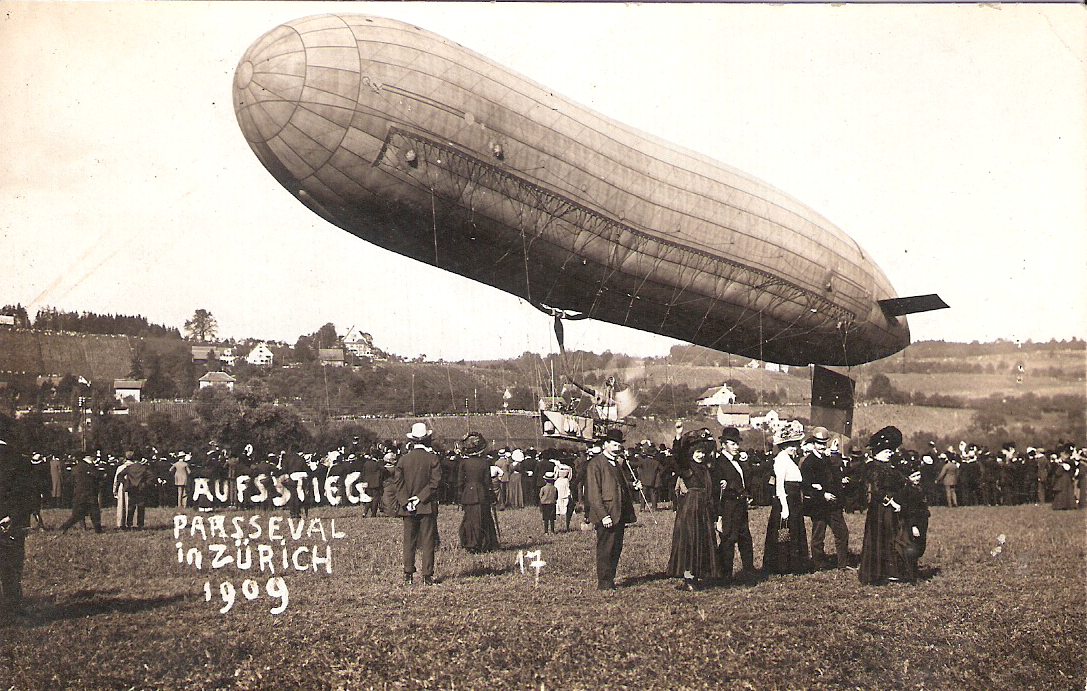Major von Parseval mit seinem lenkbaren Luftschiff in Zürich