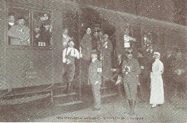 L'Arrivé du train à Sierre, des francais se rendant à Montana