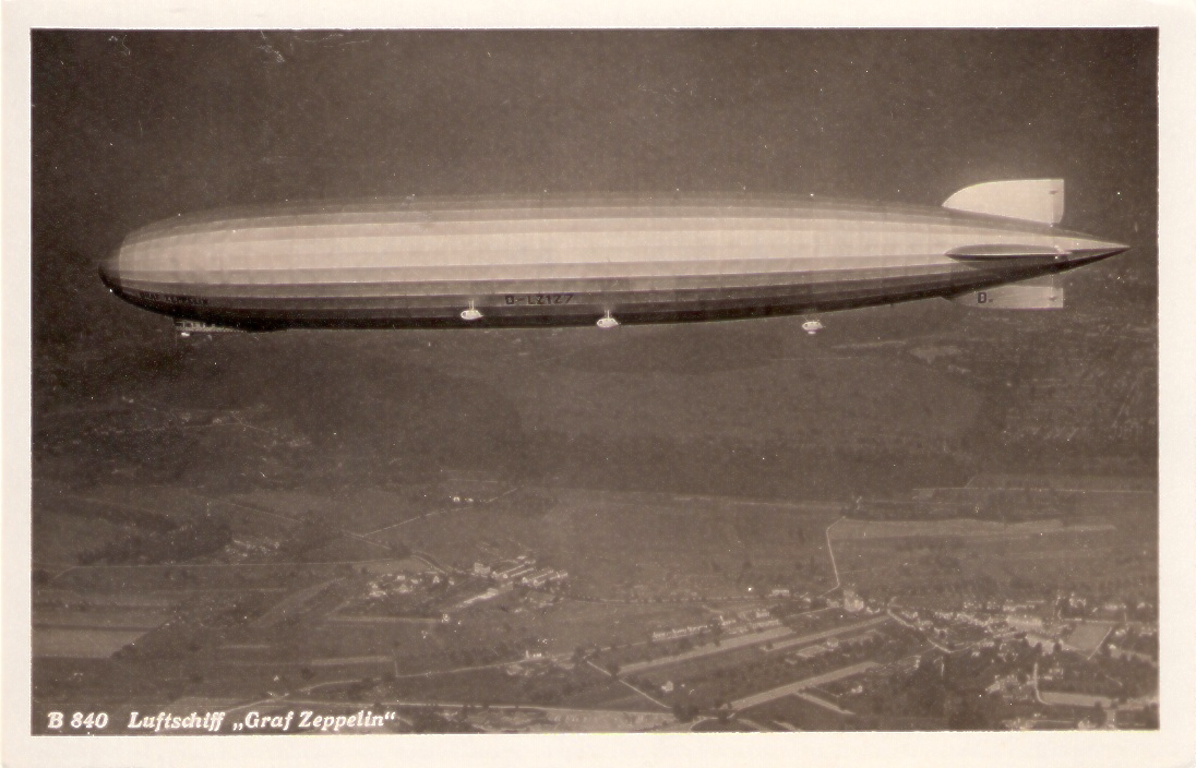 Luftschiff Graf Zeppelin über den Rheinbrücken